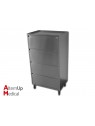 Trolley mades of satined welded AISI 304 stainless steel. With 4 sliding drawers (internal, 49 x 33 x 18 h cm) Top drawer lockable, upper shelf with safety edges to carry instruments 4 revolving castors Ø 80 mm.