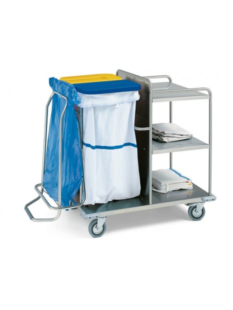 Ce chariot permet de récupérer le linge sale tout en distribuant le linge propre aux lits des patients.