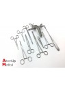 Composé de: Spéculum, Pince Hémostatique x 2, Ciseaux dissecteurs droits, Ciseaux dissecteurs courbés, Pince à préhension en cœur, Porte Aiguille, Pince de Museux et Pince à dissection et Curette