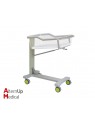 Berceau néonatal, aluminium et acier enduit d'époxy, panier en plastique laminé amovible et anatomique, trendelenburg/ressort à gaz inversé, matelas en mousse, poignée de poussée.